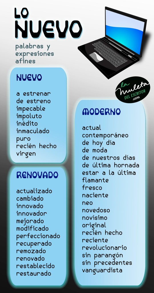 Para el que no conozca la finalidad de La muleta del escritor, le diré que se trata de una web destinada a ayudar a todo aquel (escritor o no-escritor) que desee encontrar las palabras, los verbos o los adjetivos adecuados para realizar sus descripciones, todo ello, simplificado mediante esclarecedoras fichas visuales o listas de ideas afines. Recientemente he incorporado una nueva sección (the writer’s crutch) donde versiono las fichas que ya se han publicado en inglés. Dicha sección crecerá semana a semana, también. Si todavía no conoces ninguna de las dos versiones de mi página, te invito a que les eches un vistazo: