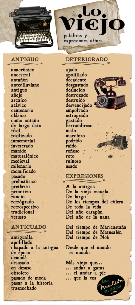 ¡Hola, queridos amantes de las palabras! Esta semana seguiremos ampliando vocabulario sobre las cualidades de las cosas con dos nuevas fichas de adjetivos y expresiones sobre lo antiguo y lo moderno. Para no quedarnos desfasados, ni dejar que vuestro vocabulario se apolille y, así, estar a la última. 😁