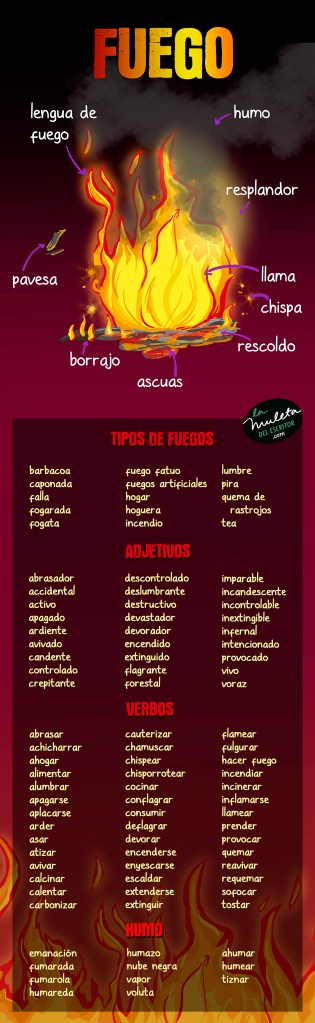 Para el que no conozca la finalidad de La muleta del escritor, le diré que se trata de una web destinada a ayudar a todo aquel (escritor o no-escritor) que desee encontrar las palabras, los verbos o los adjetivos adecuados para realizar sus descripciones, todo ello, simplificado mediante esclarecedoras fichas visuales o listas de ideas afines. Recientemente he incorporado una nueva sección (the writer’s crutch) donde versiono las fichas que ya se han publicado en inglés. Dicha sección crecerá semana a semana, también. Si todavía no conoces ninguna de las dos versiones de mi página, te invito a que les eches un vistazo: